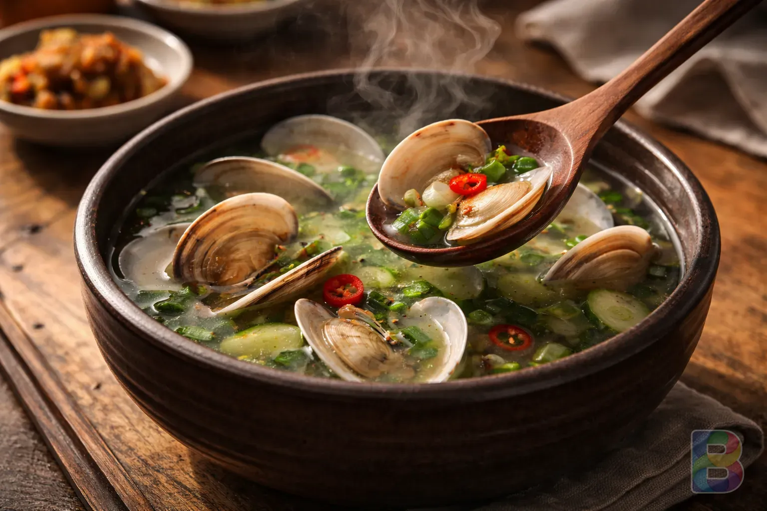 - 함께하면 좋은 것 : 부추와 찰떡궁합입니다. 부추의 비타민이 바지락의 단백질 흡수를 돕고, 조개의 차가운 성질을 부추의 따뜻한 성질이 보완해줍니다.
